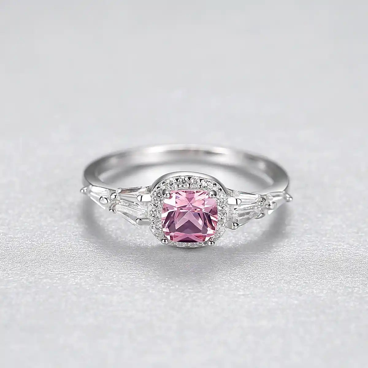 Order your 5*5mm Morgan Pink Princess Cut S925 Silver Zircon Halo Promise Engagement Ring now and start your fairytale love story