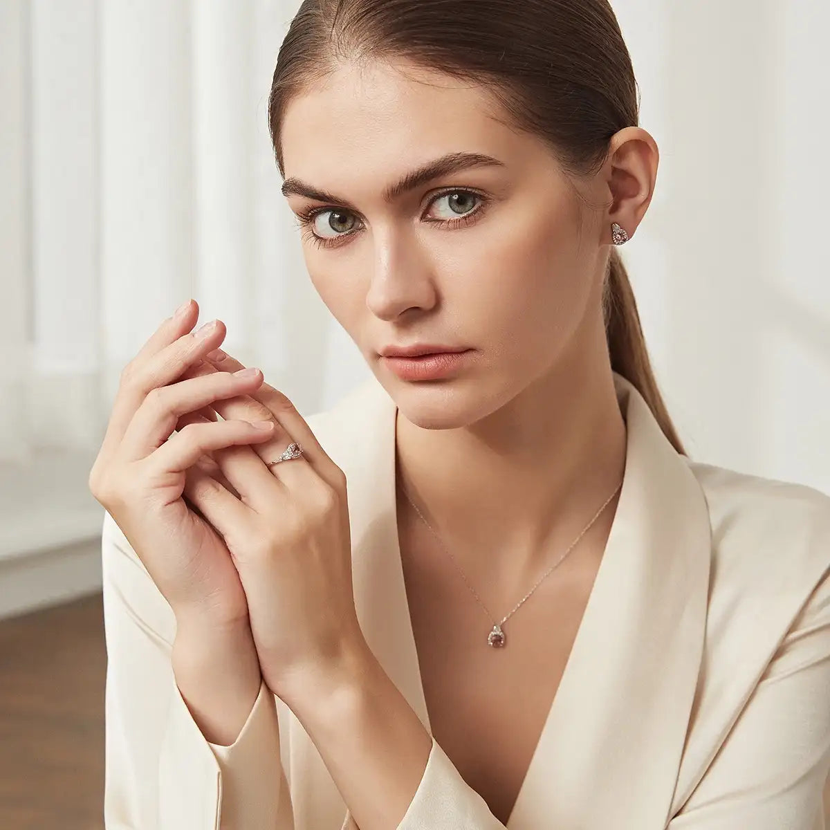 Morganite is the birthstone of May, symbolizing romance and purity. The princess cut cutting method brings the charm of Morganite to the extreme. This ring perfectly combines the romance of Morgan pink with the elegance of halo design, implying the eternity and beauty of love. Every ring carries the designer's blessing for love.