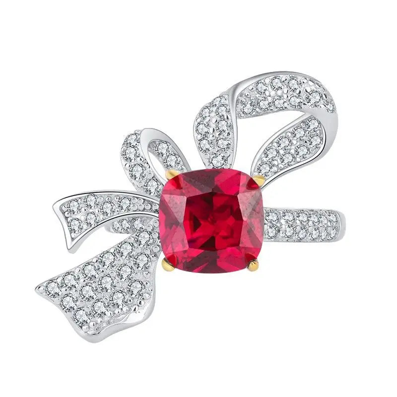 Order your 8*8mm cushion-shaped bow full diamond S925 silver high carbon diamond commitment engagement ring now and start your fairy tale love story