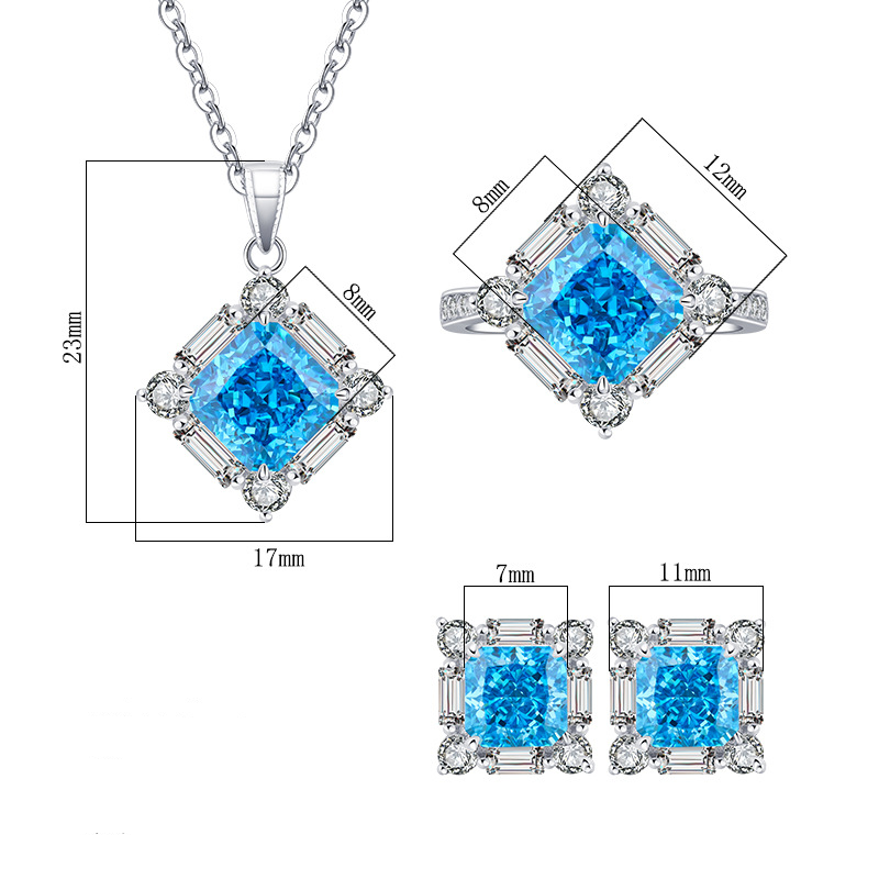 Elevate your look with this luxurious square-cut jewelry set, crafted from premium 925 sterling silver and set with high-quality, ice flower-cut High Carbon Diamonds. This elegant matching necklace and earring set features a bold 8×8mm center stone, delicately hand-set with expert craftsmanship that ensures the stones are secure and brilliantly radiant.