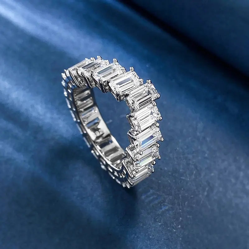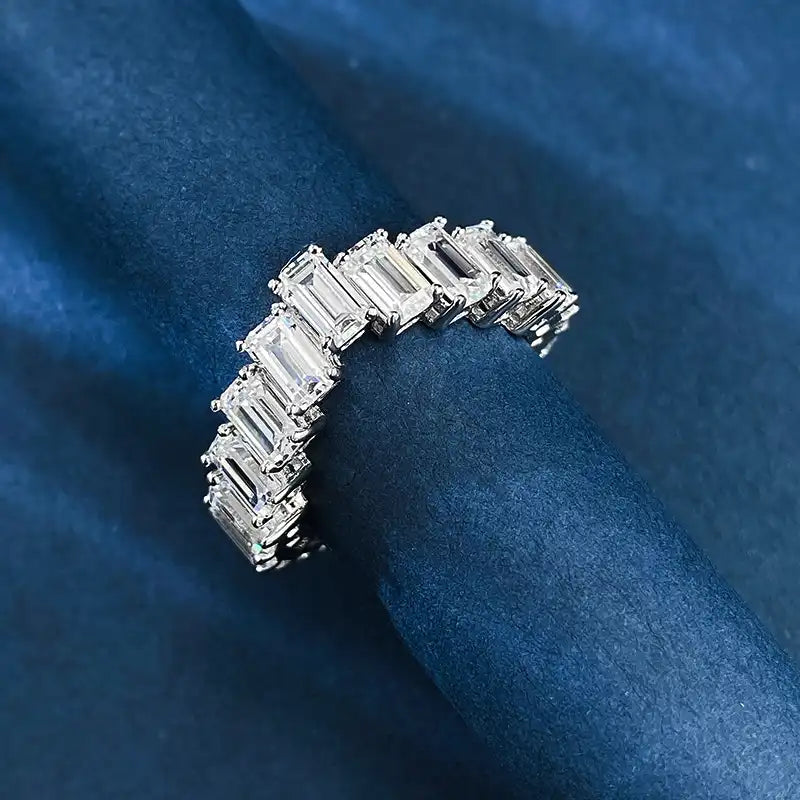Still hesitating? This unique 3*5mm emerald cut S925 silver high carbon diamond full diamond engagement ring will create a romantic galaxy legend for you and your lover. Order now and let this love shine for a lifetime!