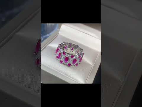 The stars are shining, and love is eternal: 3*6mm marquise-shaped S925 silver cultured ruby row diamond commitment engagement ring