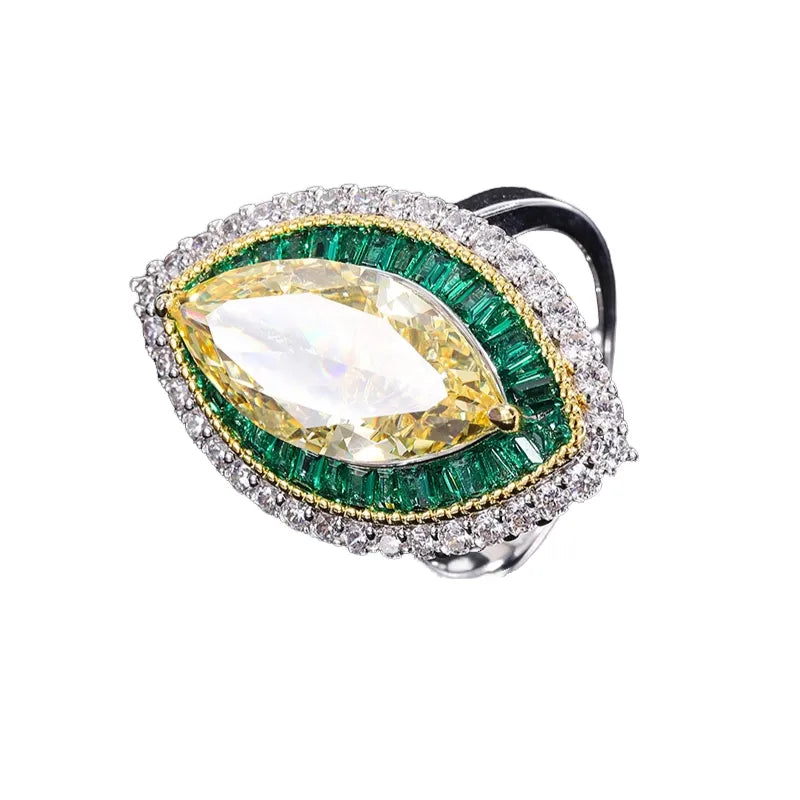 Main stone: 9*18mm marquise-shaped high-carbon diamond, exquisitely cut, dazzling, like the brightest star in the night sky.