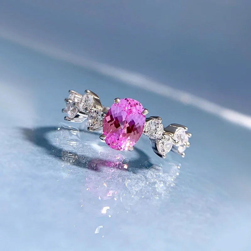 Inlaid small diamonds: The small diamonds on both sides of the ring are dazzling, which complement the main stone in the center and increase the overall gloss of the ring.
