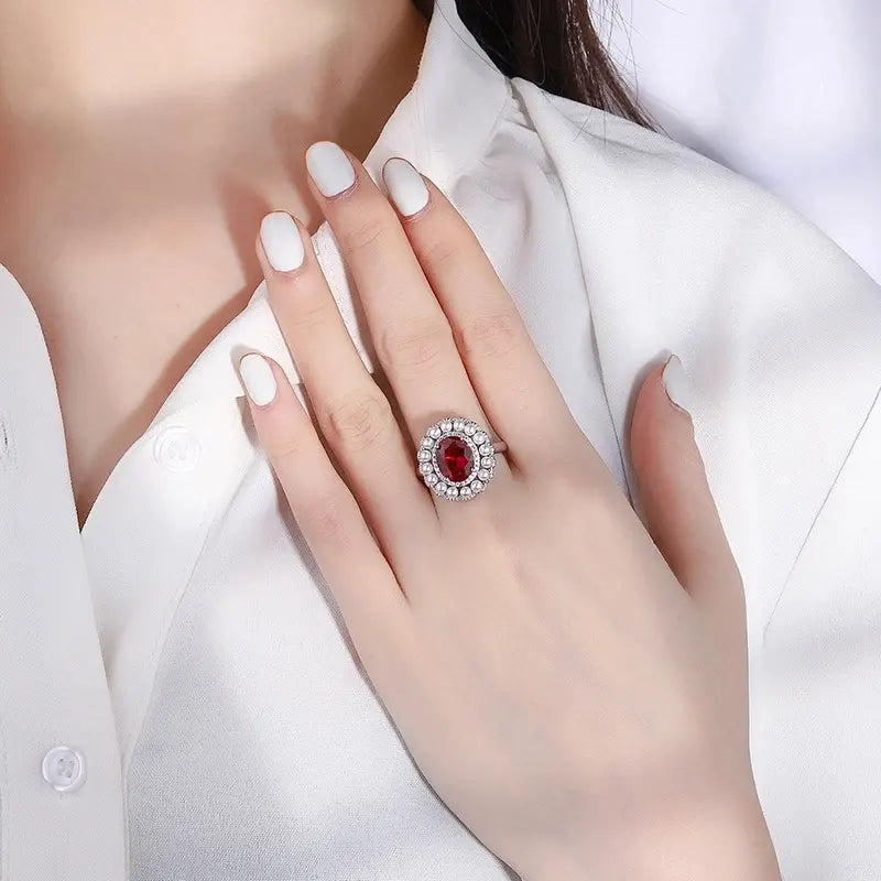Luxurious classic: 8*10mm oval pearl halo S925 silver high carbon diamond ruby aquamarine commitment engagement diamond ring