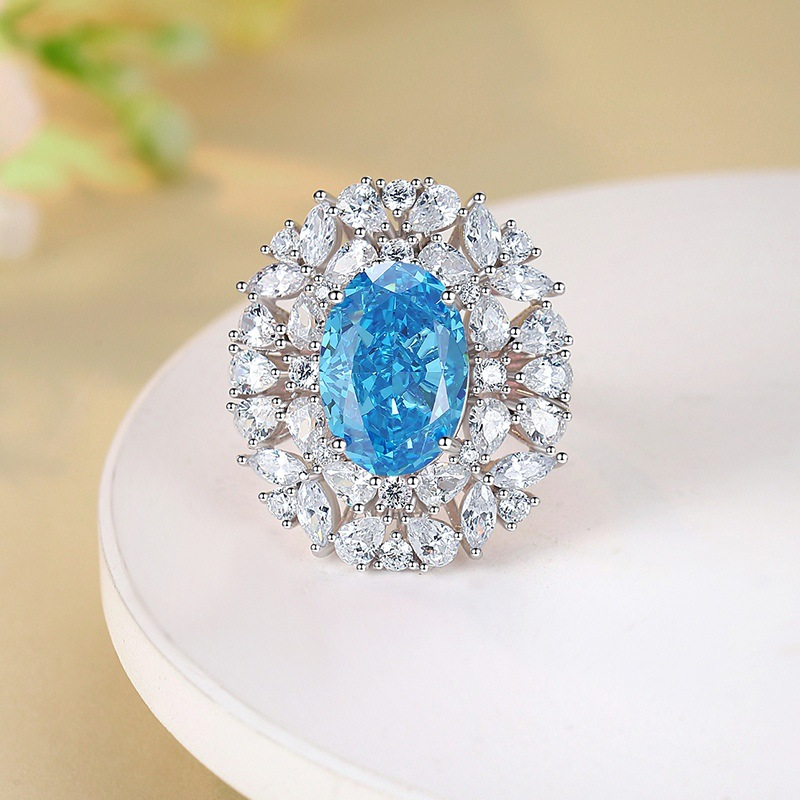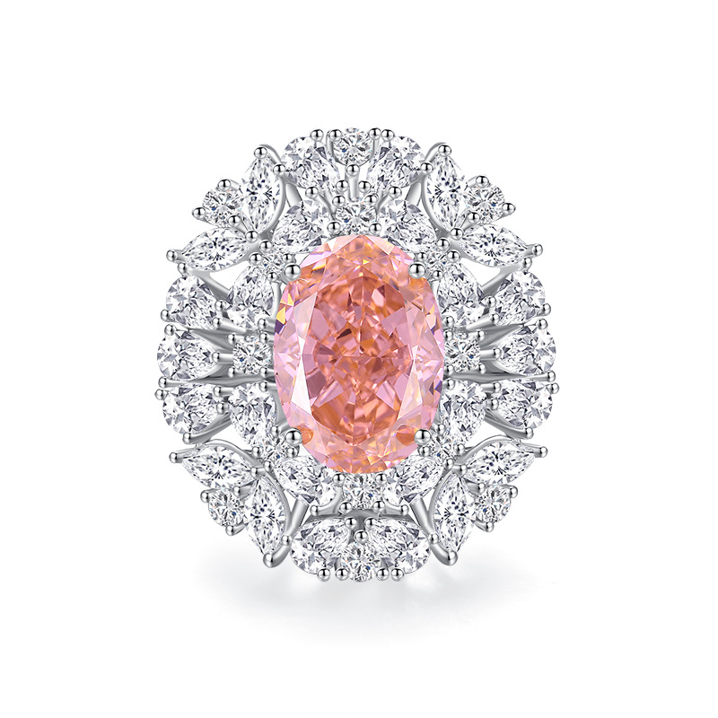 This 8-carat oval ring features a 10*14mm high-carbon diamond as the main stone and a 925 silver ring setting, highlighting nobility and elegance. The zircons around the main stone are cut using ice flower technology, shining brightly, as if surrounded by countless stars. Whether it is a proposal or an anniversary, this ring can become an important part of your love story, symbolizing eternal commitment and pure emotion.