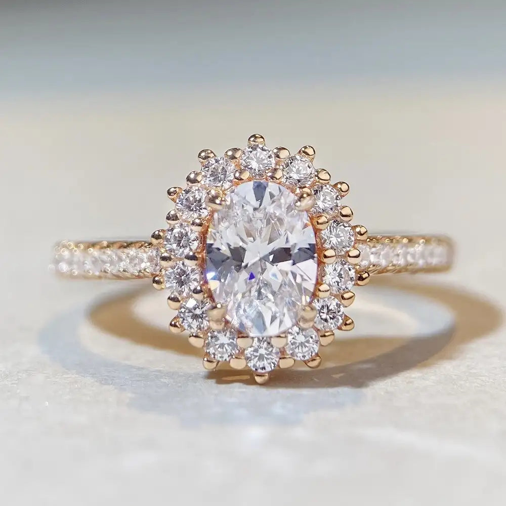 Pavé diamonds: The surrounding pavé diamonds are dazzling, complementing the central main stone, increasing the overall gloss of the ring.