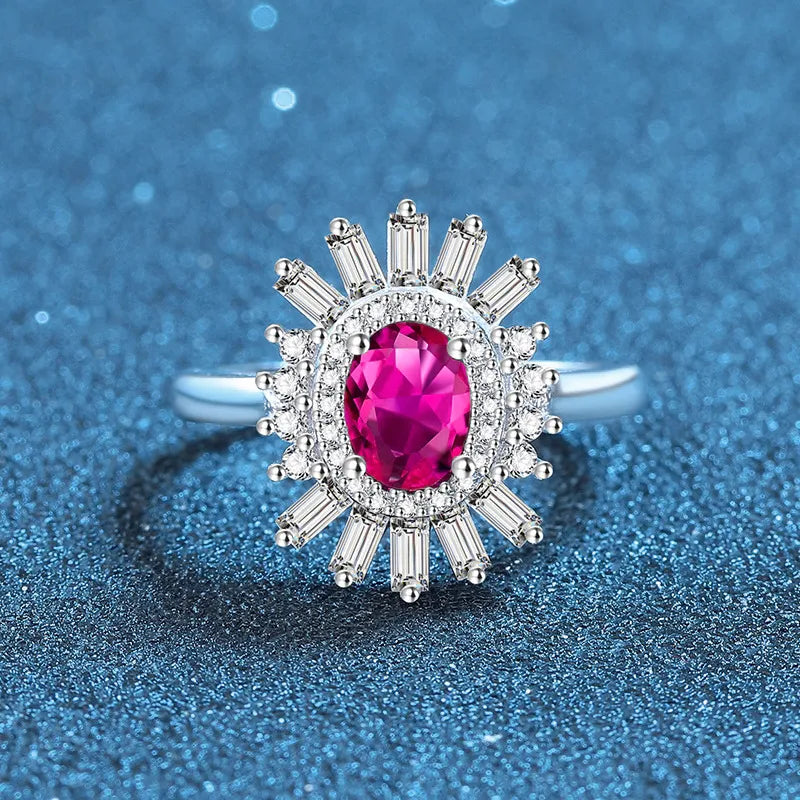 This 2 carats 5*7 oval S925 silver high carbon diamond luxury inlaid commitment engagement ring, with its unique design and dazzling light, interprets the perfect combination of luxury and romance. The oval high carbon diamond is like a star in the night sky, exuding charming brilliance. The surrounding full diamond design is like a starry sky, setting off the central gemstone more dazzling.