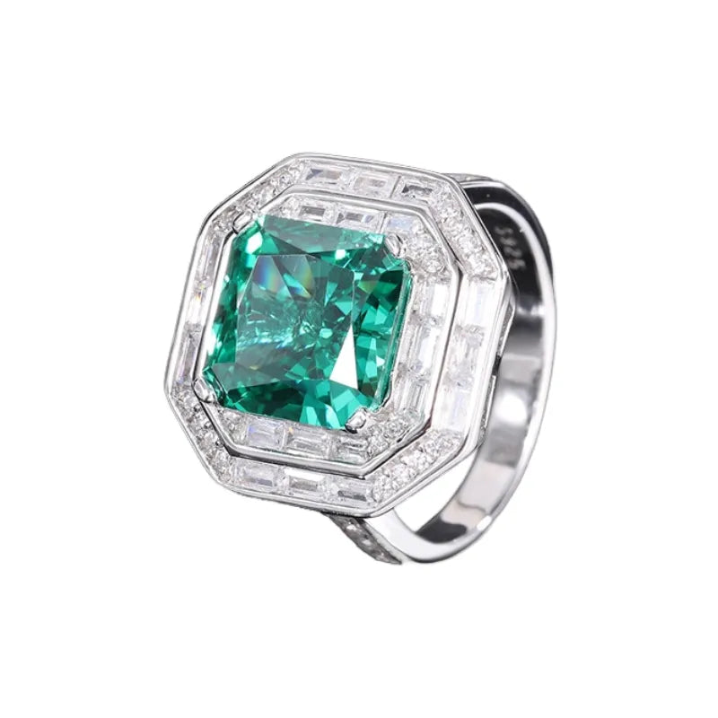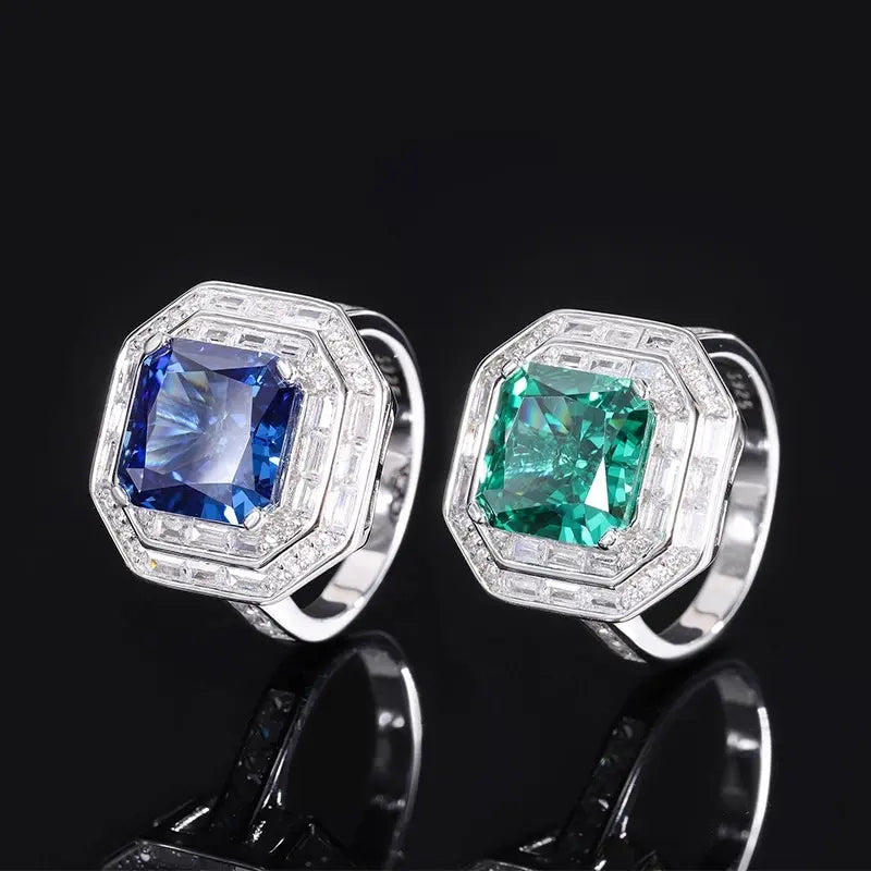 Main stone: 10*10mm princess square high carbon diamond, exquisitely cut and full color.