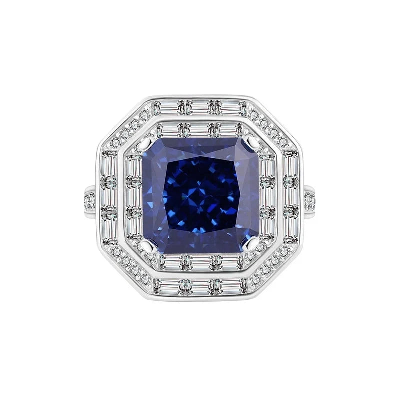 This 10*10mm princess square double halo S925 silver high carbon diamond commitment diamond ring, with classic princess square diamond as the protagonist, with a unique double halo design, interprets a perfect fusion of modern and retro. Every detail shows the sense of design and taste, and it is an excellent choice for women who pursue light luxury fashion.