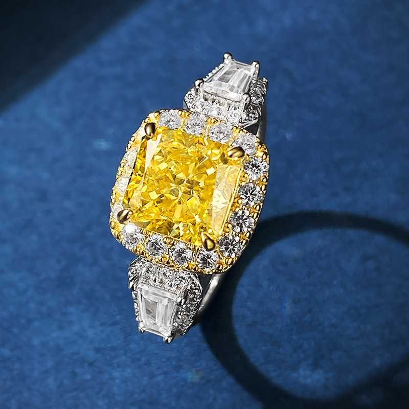 This 7*7 princess square diamond 925 silver engagement ring is not only a piece of jewelry, but also a work of art. It perfectly combines fashion, personality and classics, and is the best choice for women who pursue high-quality life.