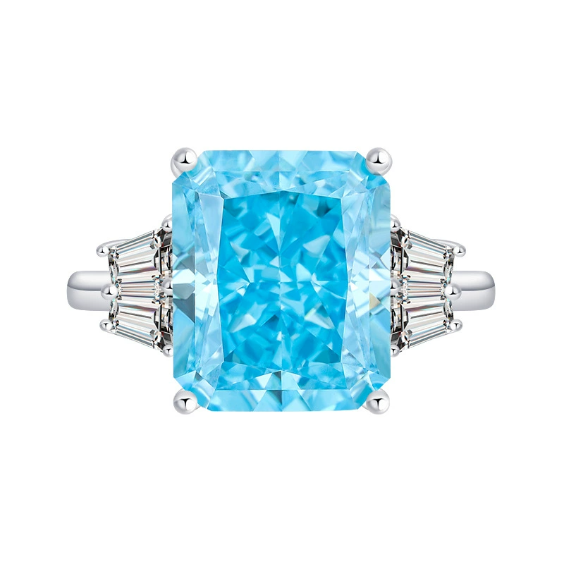 10*12mm Radiant Cut High Carbon Diamond: The main stone in the center is made of 10*12mm Radiant Cut High Carbon Diamond, which is exquisitely cut, full of fire, and exudes charming luster.