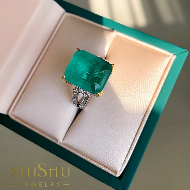Brilliant and Eternal: 12*14mm Radiant Cut S925 Silver High Carbon Diamond Large Carat Claw Set Commitment Engagement Ring