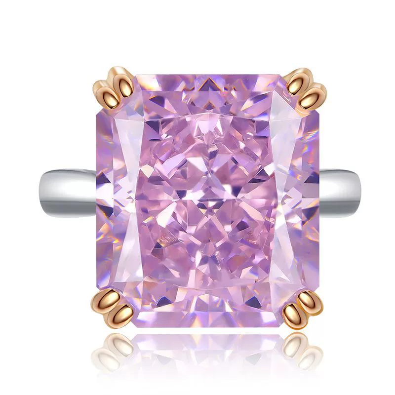 This 14*16 ice flower cut pink high carbon diamond 925 silver ring is not only a piece of jewelry, but also a work of art. It perfectly combines romance, personality and classics, and is the best choice for women who pursue high-quality life.