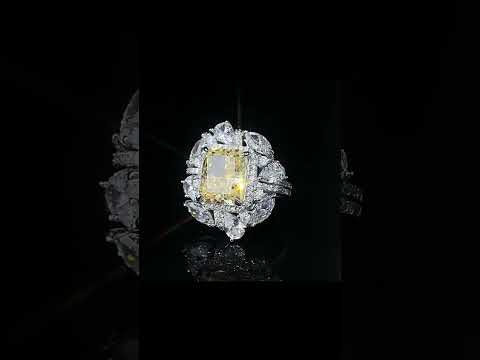 The main stone of this radiant cut engagement ring is a 4-carat 9*11mm high-carbon yellow diamond. The 925 silver ring setting is beautifully designed, and the diamonds dotted around it are as dazzling as the sun. Its gorgeous appearance makes it the focus of any celebration and a symbol of love and commitment. Wearing it will make you shine in every important moment.
