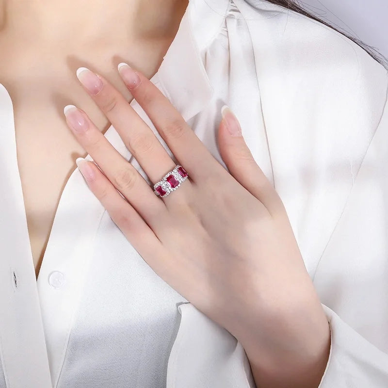 Fashionable and retro: 5*7mm rectangular diamond S925 silver high carbon diamond commitment engagement diamond ring