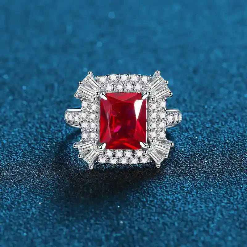 Radiant radiance, halo blooming: 5 carat 8*10mm s925 silver high carbon diamond commitment engagement ring