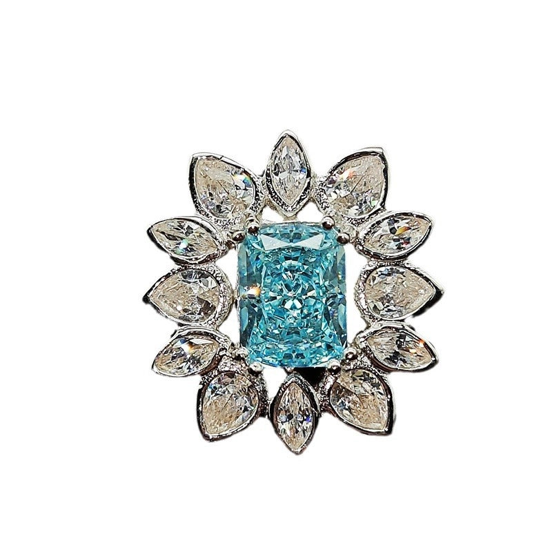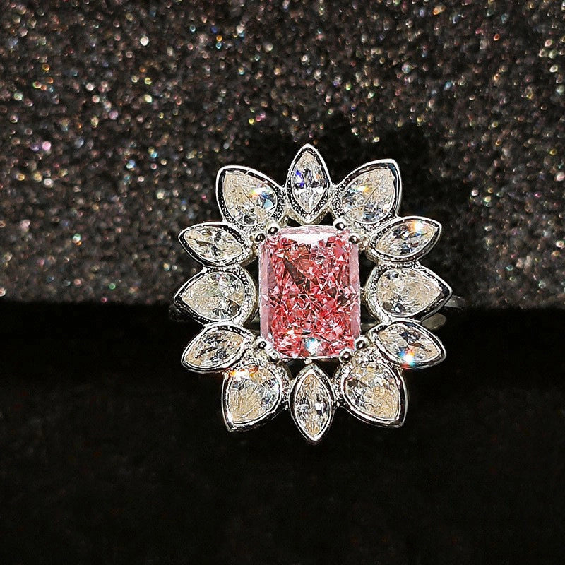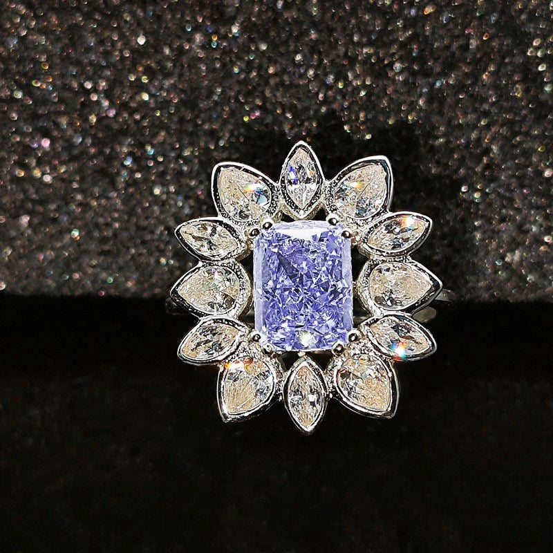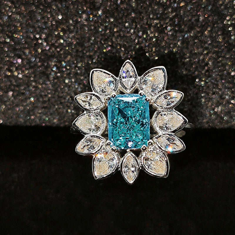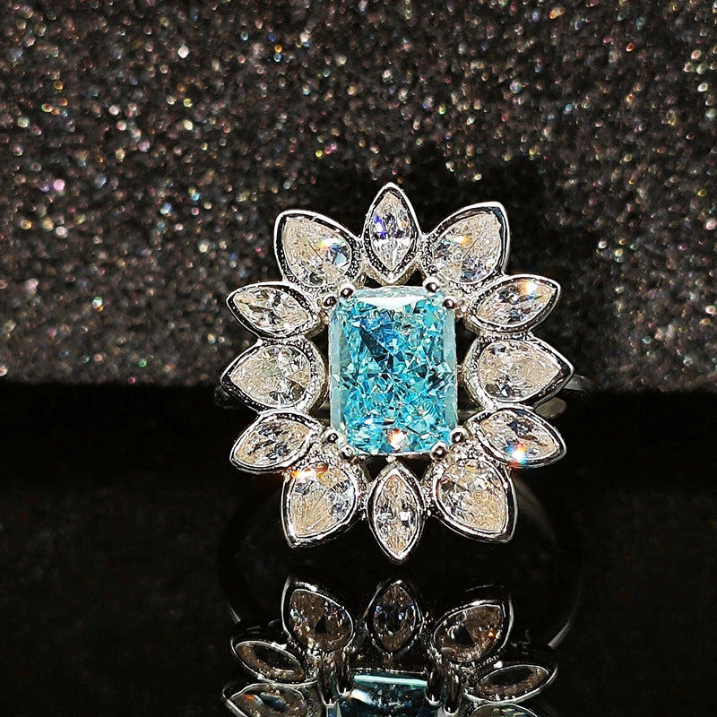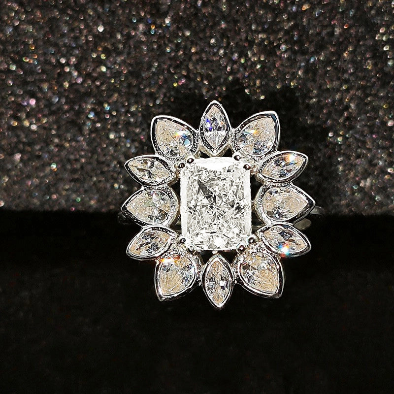This shining Radiant high carbon diamond ring is made of 925 silver and combined with ice flower cutting technology, which makes it shine brightly at any angle. Each high carbon diamond symbolizes pure and eternal love. This ring is undoubtedly the best testimony of love, allowing your lover to feel endless romance and warmth.