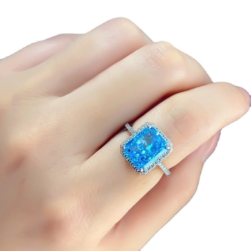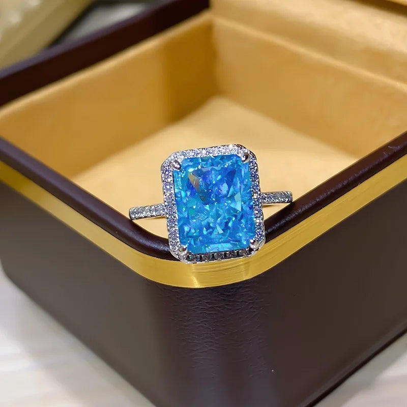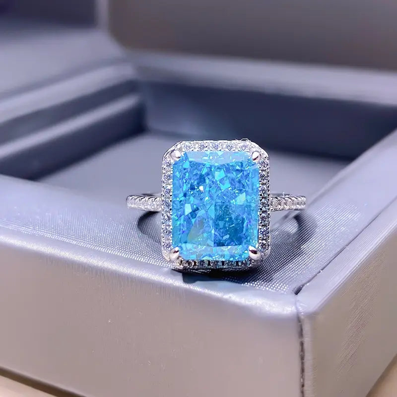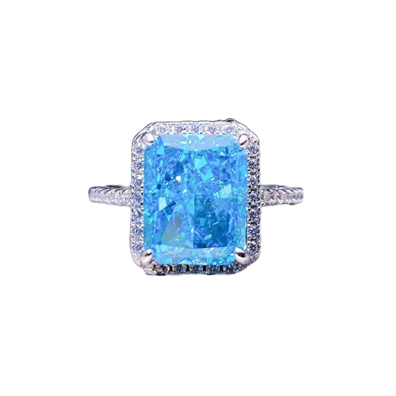 Starry: Rectangular radiant cut full diamond halo S925 silver high carbon diamond commitment engagement ring