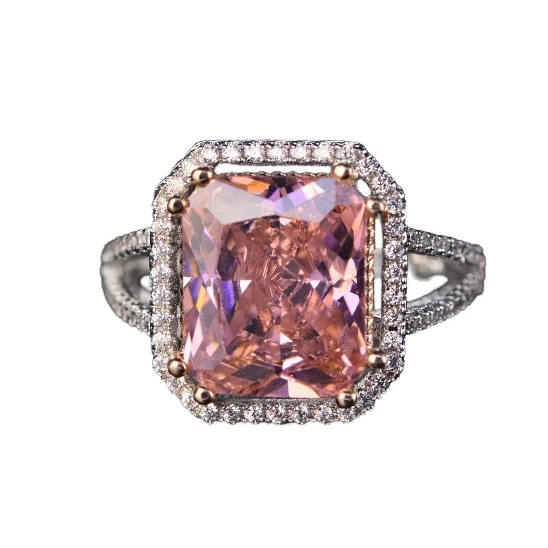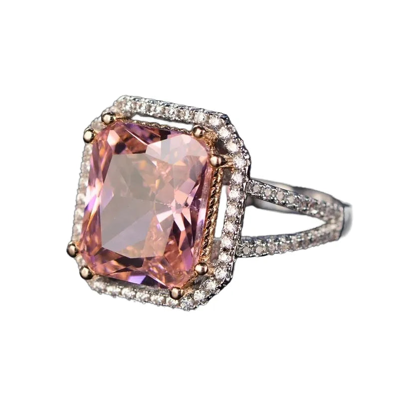 This Brilliant pink radiant cut quartz S925 silver commitment engagement ring is like a rose blooming in the heart, exuding a warm and romantic atmosphere. Every pink quartz is full of the burning desire for love, and every small diamond is shining with the light of happiness.