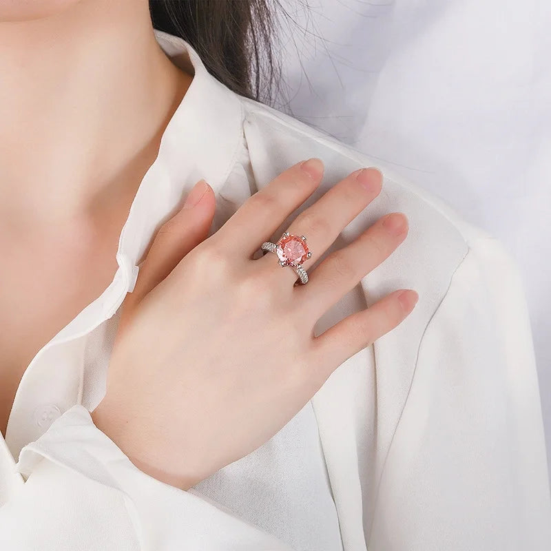 Order your 12mm round S925 silver pink high carbon diamond full diamond claw setting promise engagement ring now and start your fairytale love story