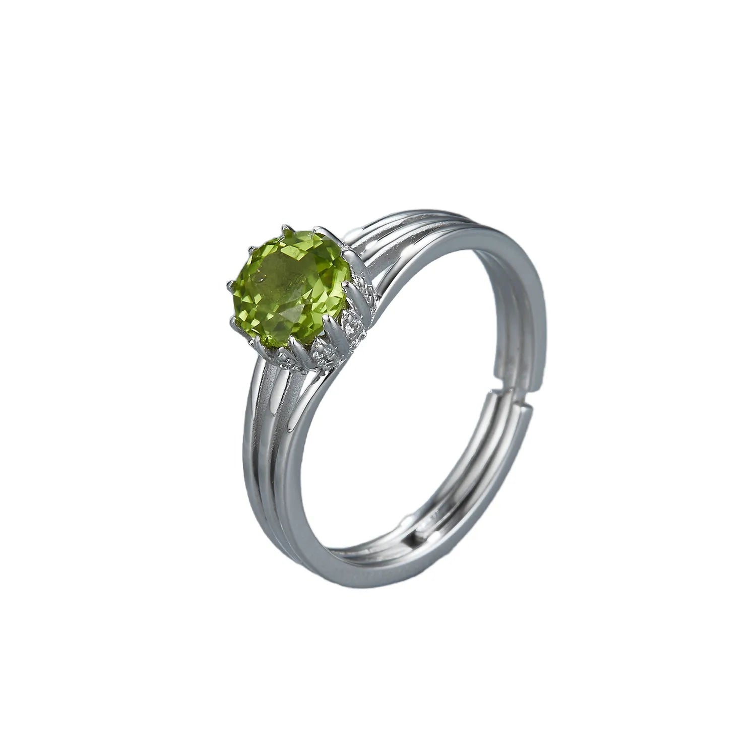 Round Engagement Ring 925 Silver Peridot Open Ring