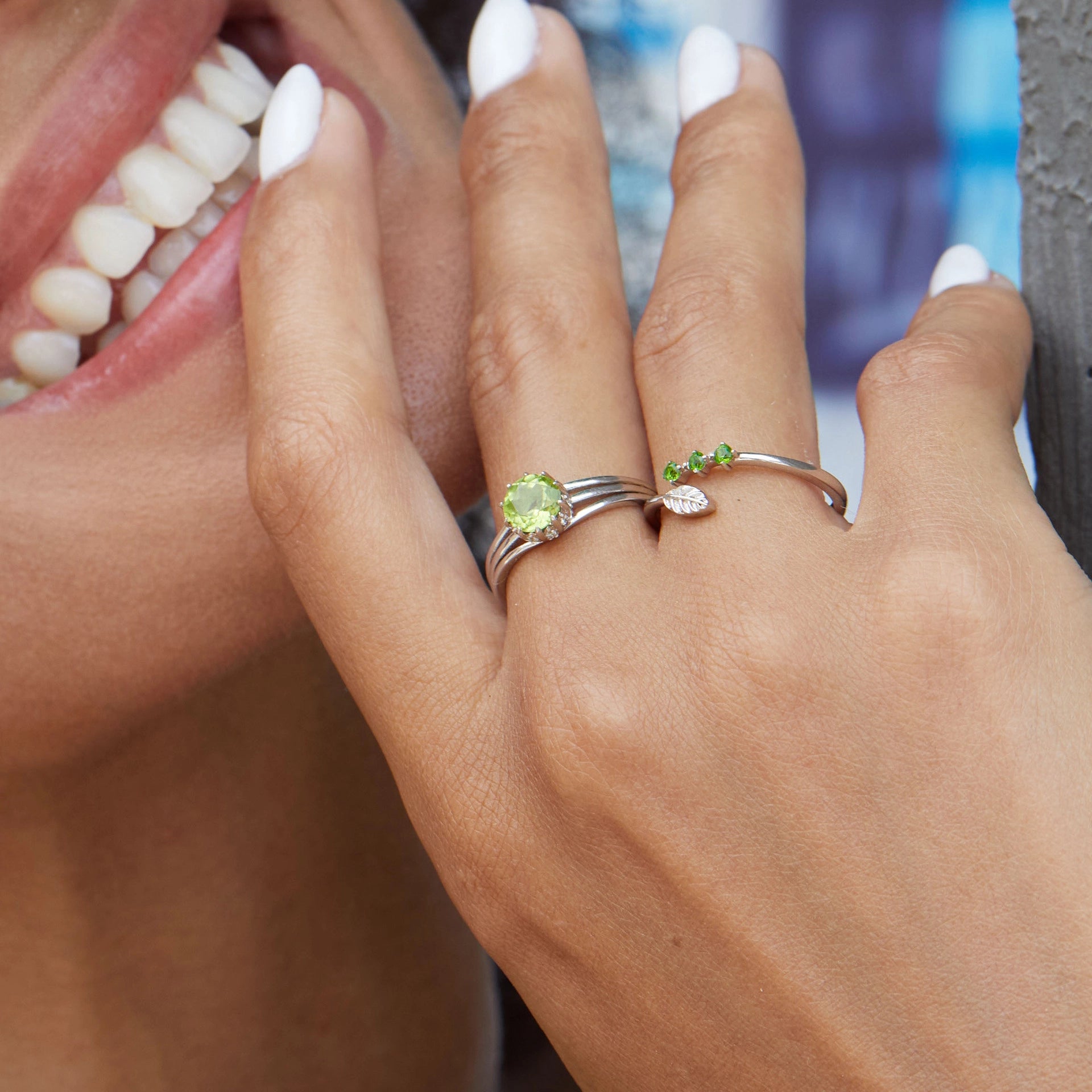 Simple but not simple, this green round peridot ring stands out with its fresh and bright color and exquisite 925 silver simple ring design. Whether it's for everyday life or a special event, this ring will add a special touch of sparkle.